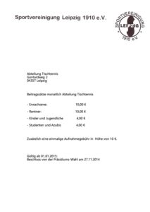 Gebührenordnung Abteilung Tischtennis